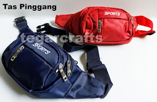 Waist Bag merah dan biru, Size: Panjang 20cm Tinggi: 12cm Tebal: 5cm